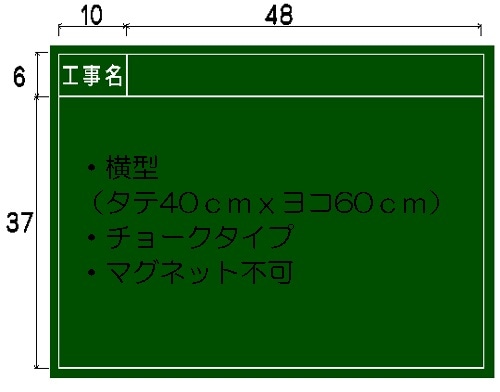 工事現場用黒板(スチール製) 印刷入/ タテ45cm x ヨコ60cm x 厚さ2cm 重さ約1.8kg