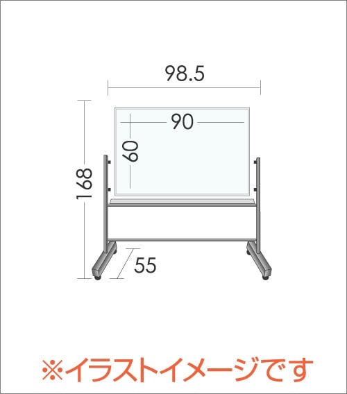 脚付き片面固定式ホーロー製ホワイトボード 無地(片面タイプ) / ボードサイズ:タテ60cm x ヨコ90cm、スタンド装着時の全高168cm