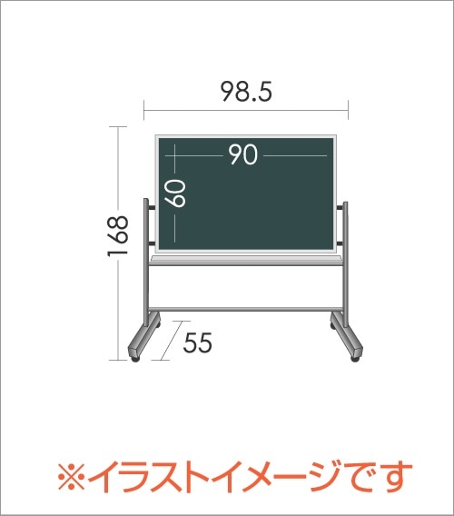 脚付き片面固定式スチール製黒板 無地(片面タイプ) / ボードサイズ:タテ60cm x ヨコ90cm、スタンド装着時の全高168cm