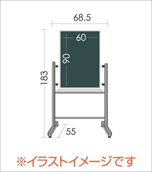 脚付き片面固定式スチール製黒板 無地(片面タイプ) / ボードサイズ:タテ90cm x ヨコ60cm、スタンド装着時の全高183cm