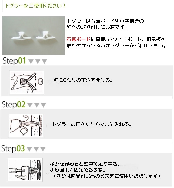 ※石膏ボードへの取付けの方はトグラーをご購入下さい。