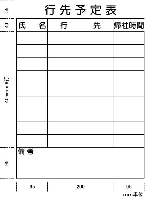 行動予定表|行先予定表|週予定表|就労表