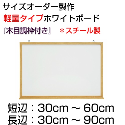 『軽量タイプ』【木目調枠付き】(スチール製)ホワイトボード 無地 (30~60cm x 30~90cm)  x 厚み2.1cm